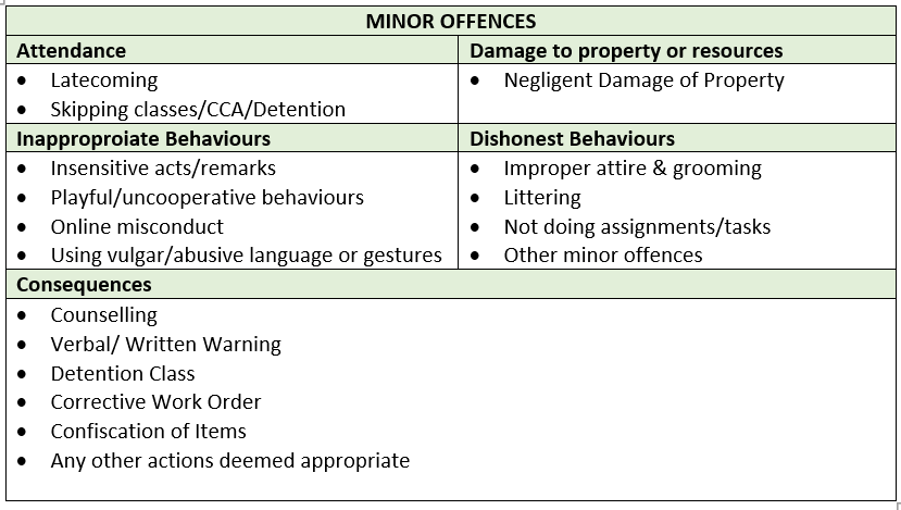 The school is committed to ensuring that the school remains a safe space for all students. All students and staff are encouraged to report any cyber-wellness and student management incidents involving our students by reporting to form teachers, trusted adults and/or counsellors in Student Service Hub.
