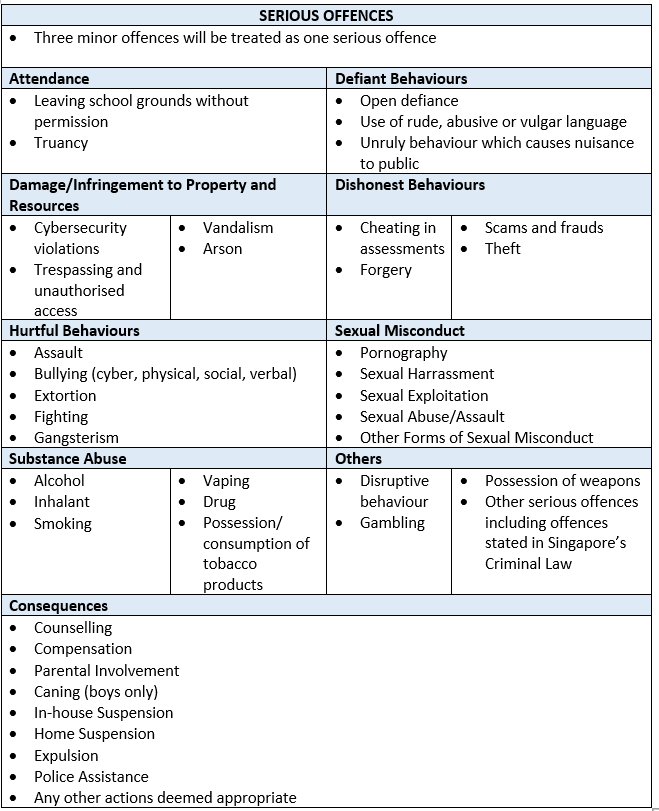 The school is committed to ensuring that the school remains a safe space for all students. All students and staff are encouraged to report any cyber-wellness and student management incidents involving our students by reporting to form teachers, trusted adults and/or counsellors in Student Service Hub.